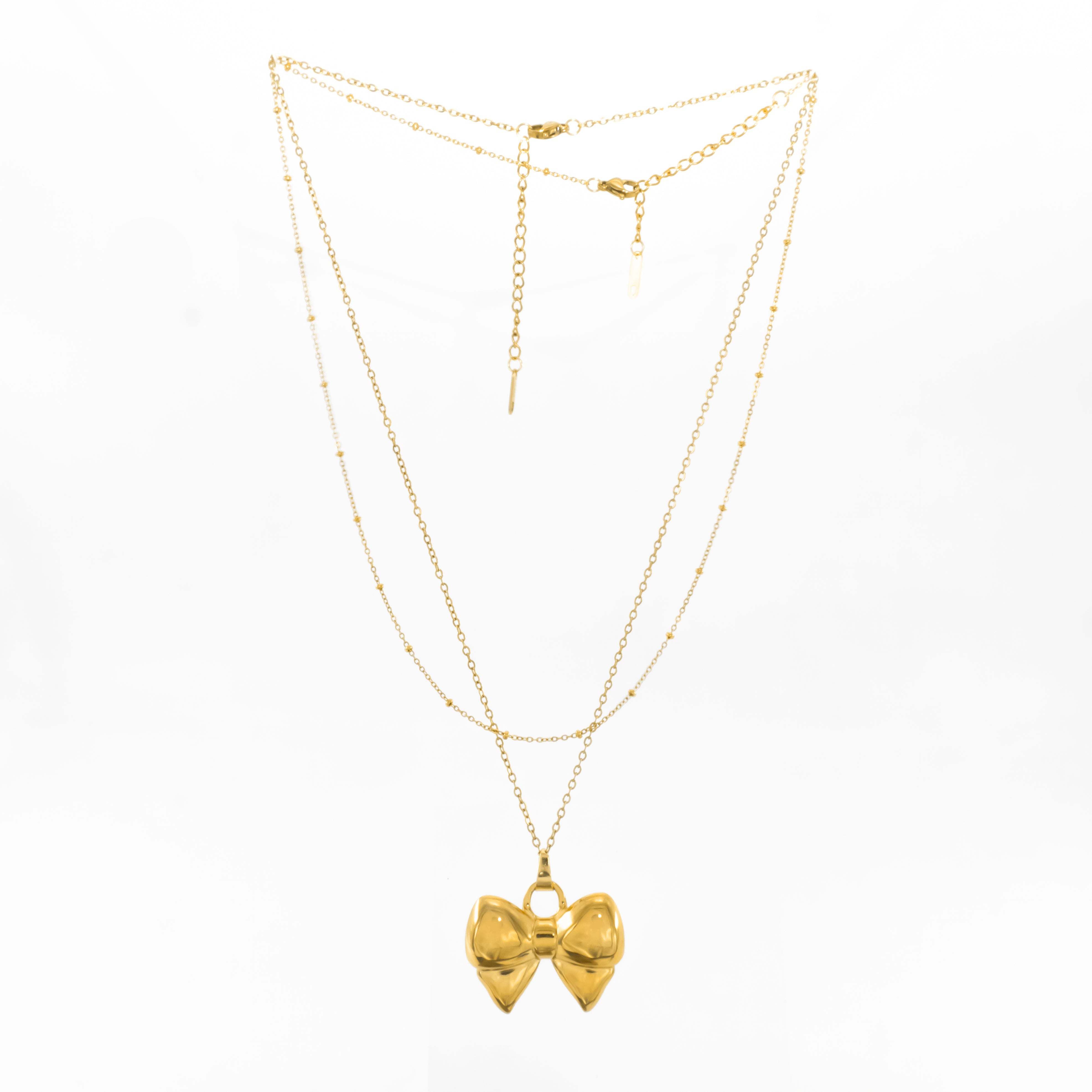 Two layers of absolutely stunning neckchains, and on top of it, a cute bow to add on to the feminity and cuteness! That's what this one is.